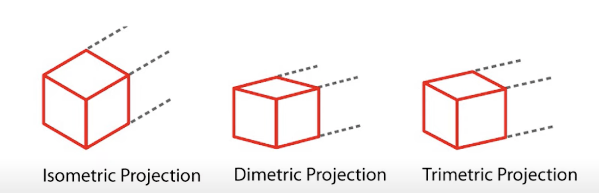 Isometric과 같이 세 면이 다 보이는 방식에는 총 3종류가 있다.