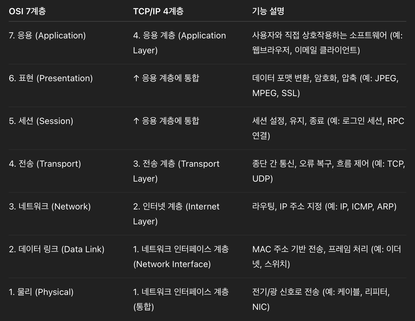 = OSI 모델은 7계층, TCP / IP 모델은 4계층으로 이루어져 있다.